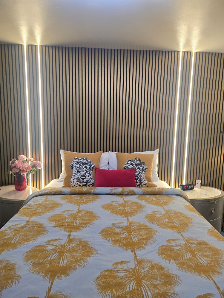 Essentials (towels, bed sheets, soap and toilet paper), Hangers, Egyptian-cotton Bed linen, Extra pillows and blankets, Room-darkening blinds, Alarm Clock